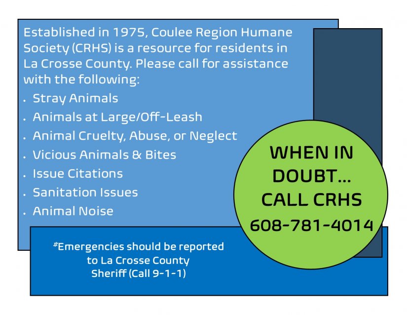 Payments after March 31st will be accepted at La Crosse County Clerk’s Office for dogs. For questions, please call 608-785-9581.